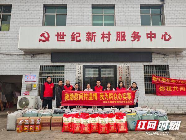 慰问组送去的物资。红网时刻新闻1月28日邵阳讯(记者 曾珍 通讯员 刘瑶 何春艳)1月27日,邵阳市民政局和邵阳市救助管理站一同开展“救助慰问传温情 我为群众办实事”春节节前走访慰问活动,救助管理站的志愿者们分赴双清区火车站乡世纪新村、洞口县大屋瑶族乡大屋村、邵阳县塘田市镇沿滩村三地,为困难群众送去冬日暖意与节日祝福。